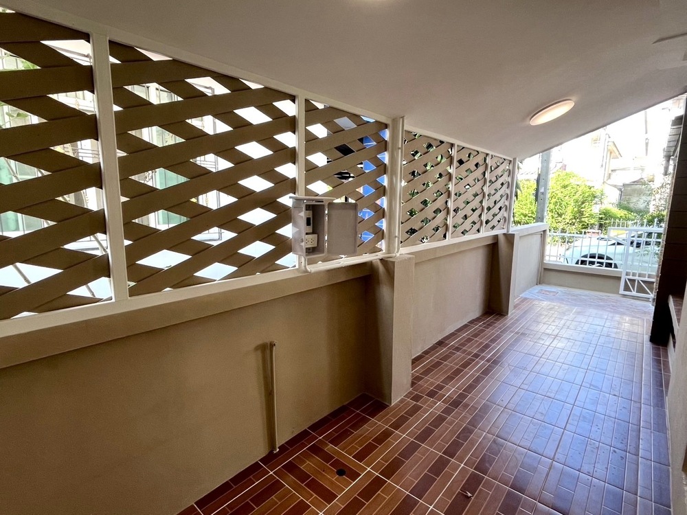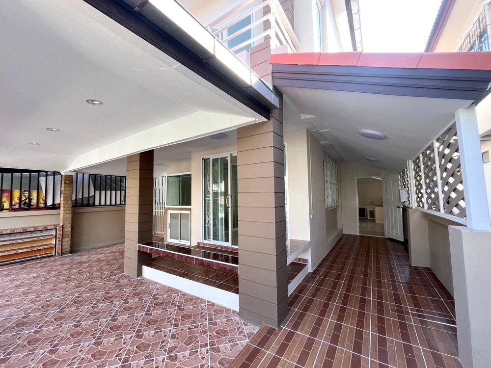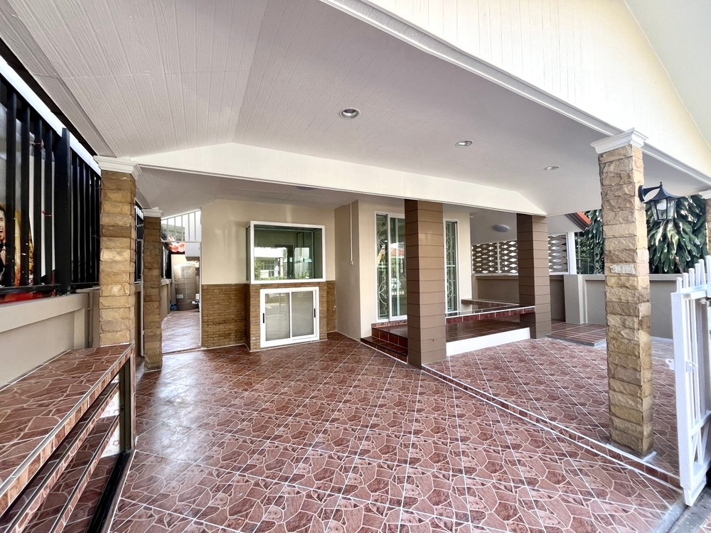 ✅ หน้าบ้าน : ปูกระเบื้องและต่อเติมหลังคา ทำให้ใช้งานได้หลากหลาย ดูแลรักษาง่าย