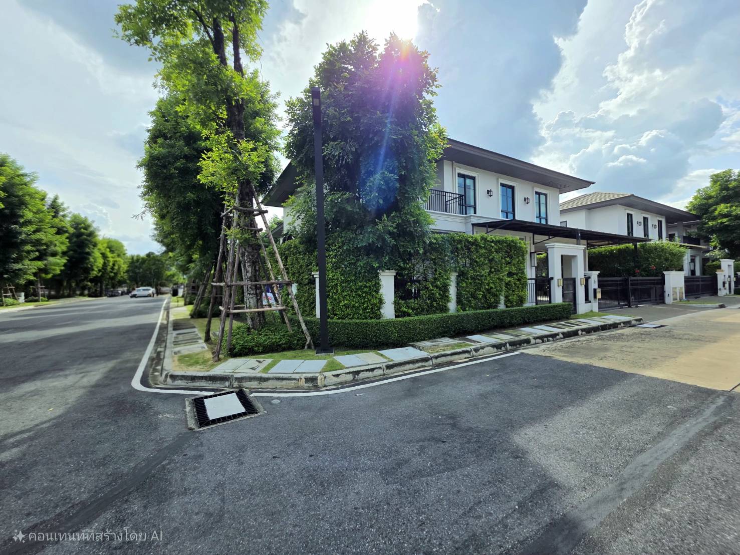• บ้านสวยแปลงมุม ตกแต่งสวนร่มรื่นรอบบ้าน มีศาลาข้างบ้าน ตกแต่งไม้เลื้อยคลุมศาลา เหมาะพักผ่อนจิบกาแฟยามเช้า หรือ ปาร์ตี้สังสรรค์ตอนเย็น
