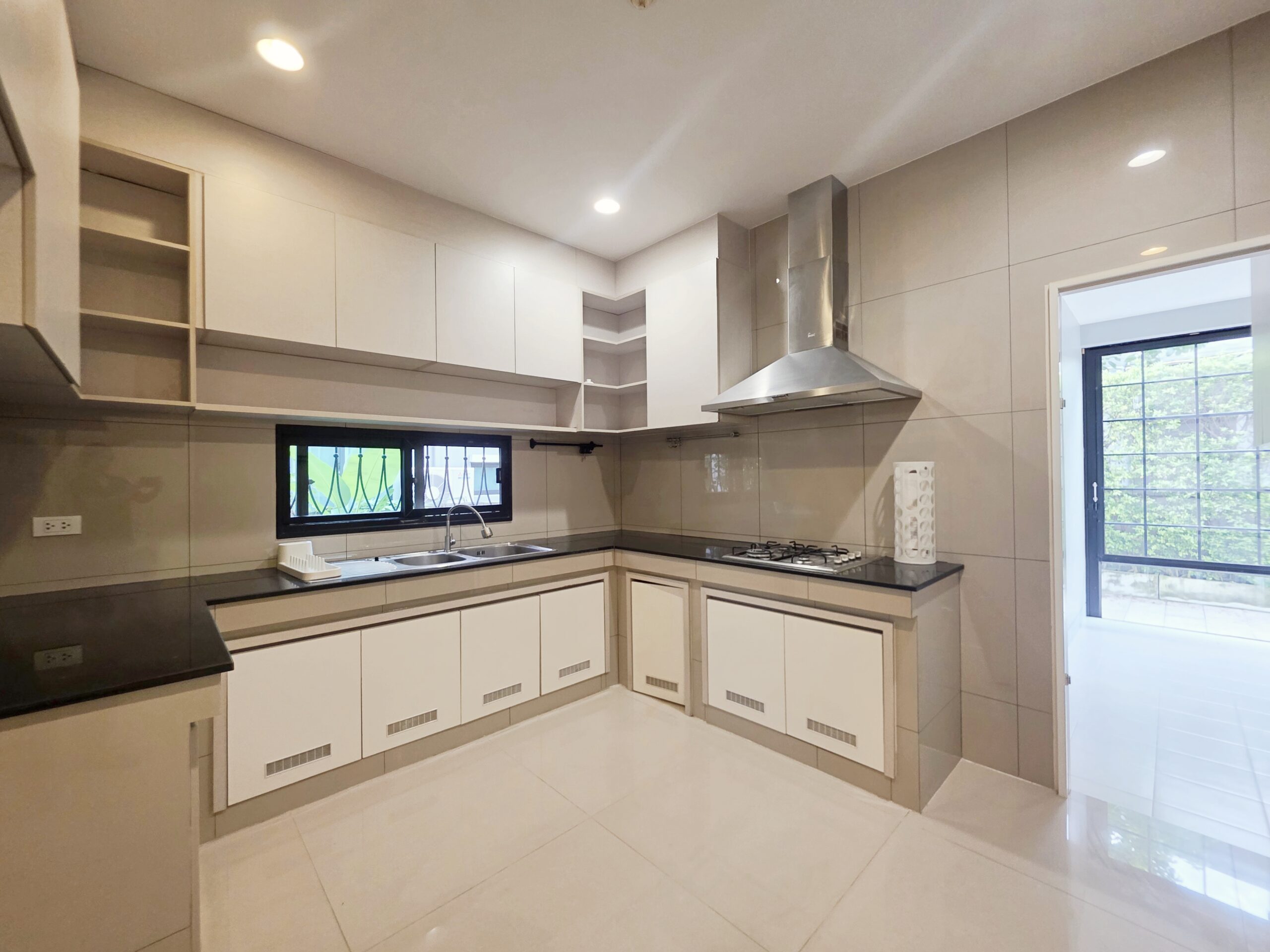 • โซนห้องครัว ตกแต่ง Built in พร้อมที่ดูดควัน เตาแก๊ส ซิงค์ล้างจาน