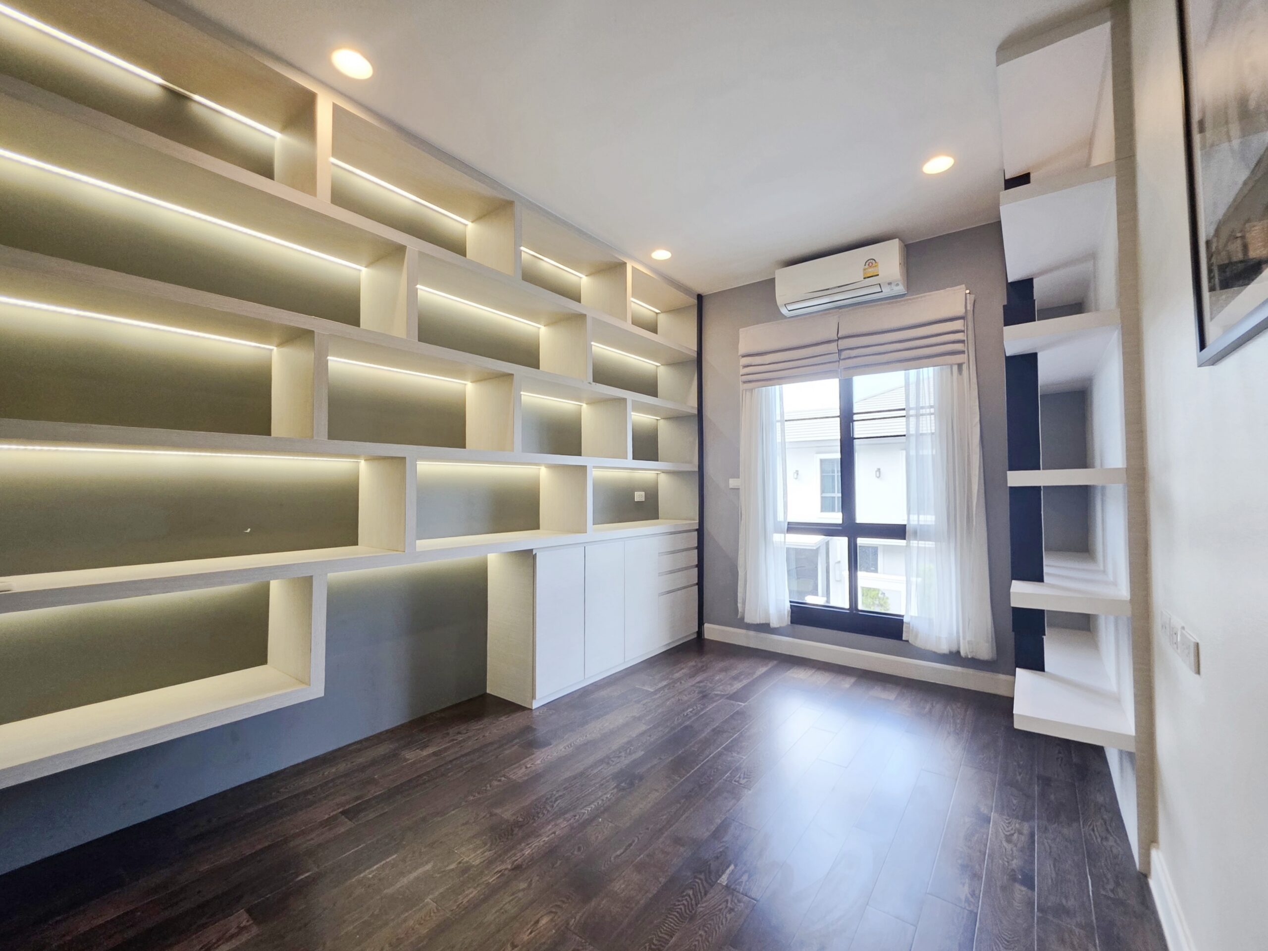 • โถงกลางบ้านชั้น 2 กั้นห้องกระจกทำเป็นห้องทำงาน ห้องเรียนหนังสือ หรือทำเป็นห้องพักผ่อนสำหรับทุกคนในครอบครัว